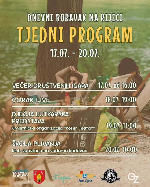 UncategorizedDnevni boravak na Kupi 17.7.-20.7. Posted on 14/07/202509/10/2025 by TZP KUPA 14 srp Tjedni program 17.7. – 20.7. TZP KUPA FILM ZA VAN uz Kupu 2025. Dnevni boravak na Kupi 24.7. – 27.7.