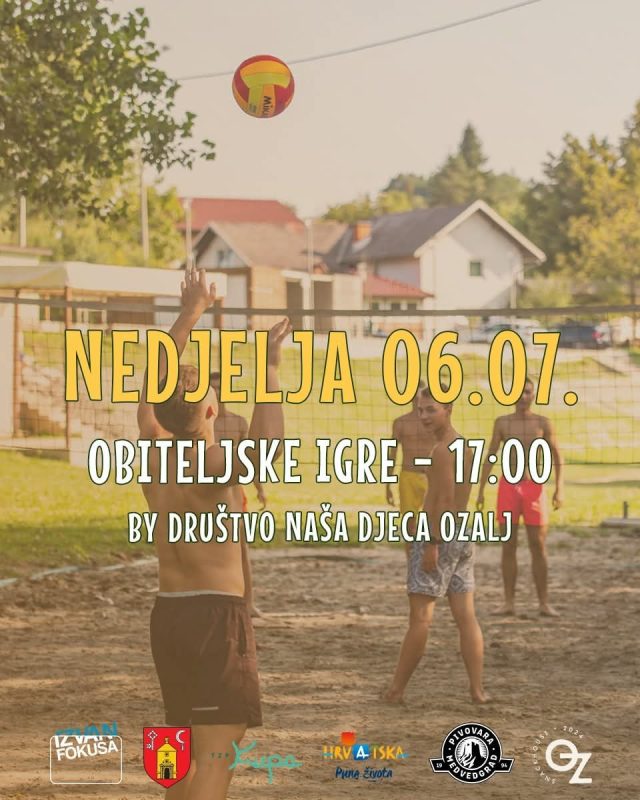 Turistička zajednica područja Kupa i Društvo „Naša djeca“ Ozalj pozivaju vas na Obiteljske igre, koje će se održati u nedjelju, 7. srpnja 2025. s početkom u 17:00 sati na Dnevnom boravku na Kupi.
